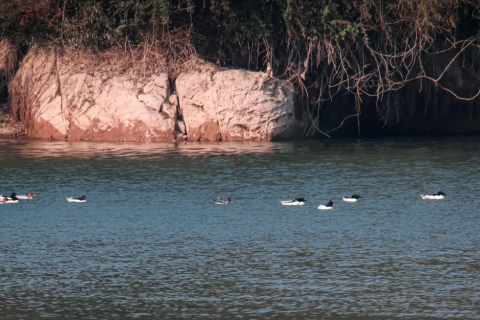 隆冬时节,当阳百宝寨的湖面上,一群被誉为“鸟中大熊猫”的中华秋沙鸭翩然而至。岸边,摄影爱好者老刘早已守候,用镜头记录这群“老朋友”的第十五次赴...