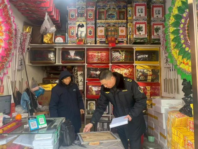 本网讯(刘平)春节临近,祭祀先祖的传统习俗也将随之而来。近日,玉阳市场监管所对辖区销售殡葬用品的经营户进行了专项检查。